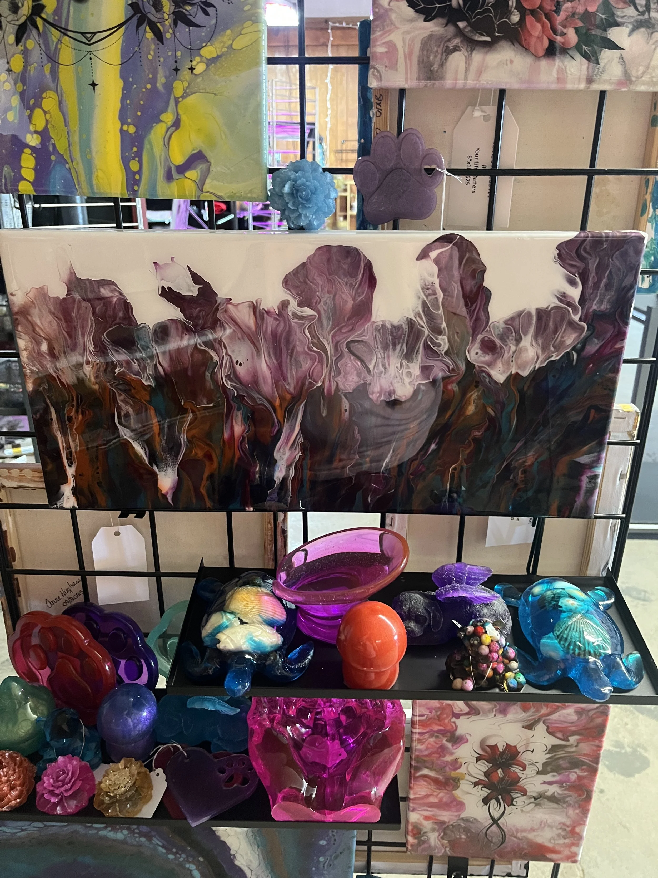 She offers pour paint classes at our Market for youth and adults. Come shop her unique items and sign up to take a class to learn this fun creative activity.